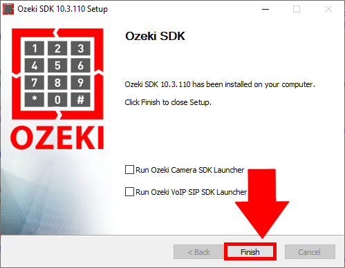 When the installataion is complete, then the window on Figure 5 will inform you about it and it will ask you whether you want to run the Ozeki Camera SDK Launcher. Click on the 'Finish' button.